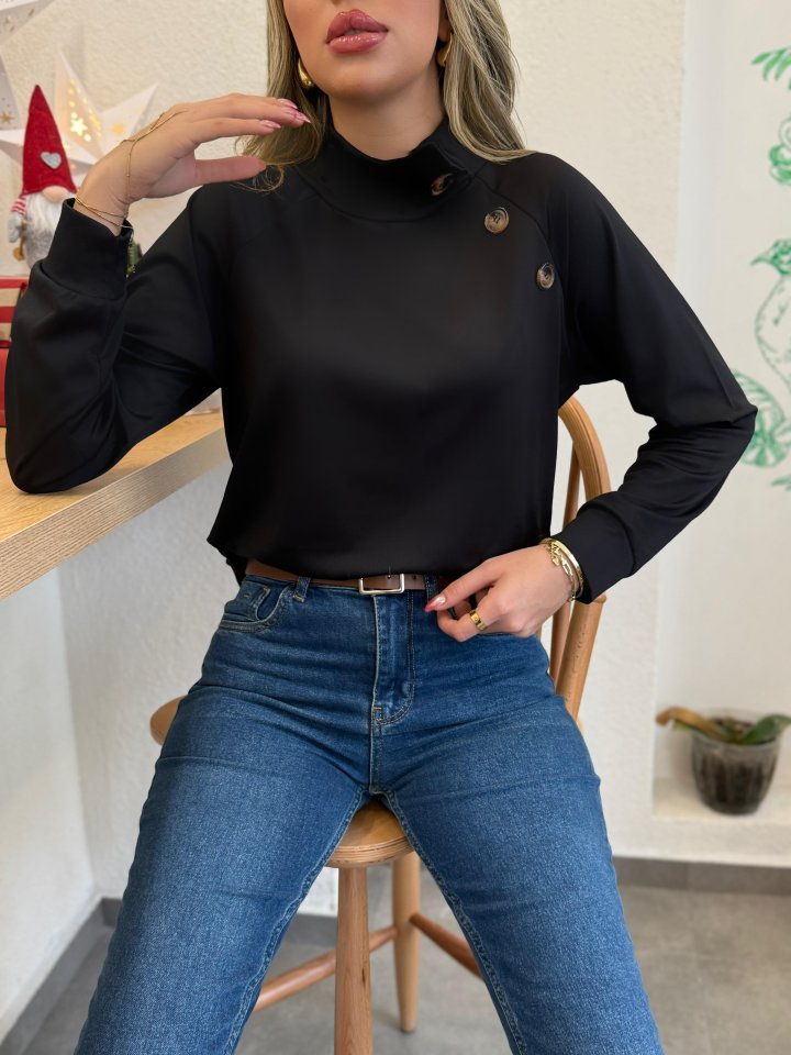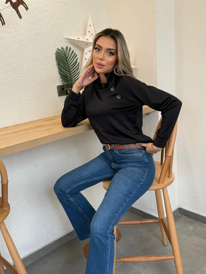 Kadın Uzun Kollu Balıkçı Yaka Düğme Detay şardonlu Dalgıç Bluz
