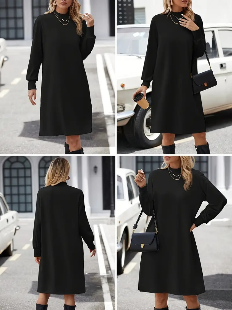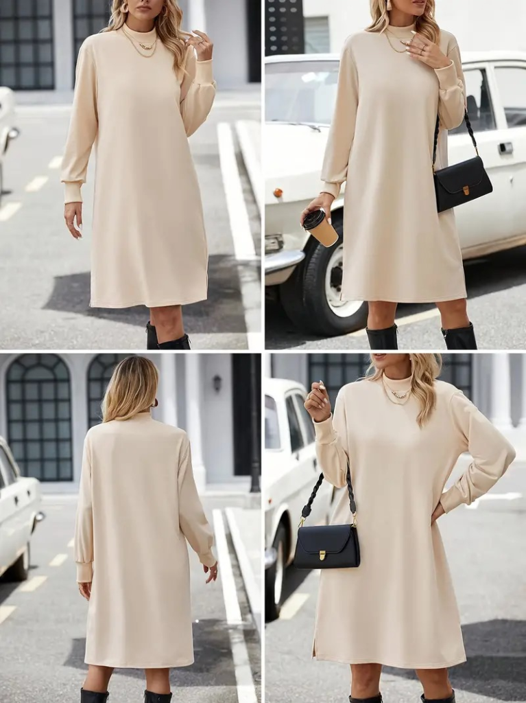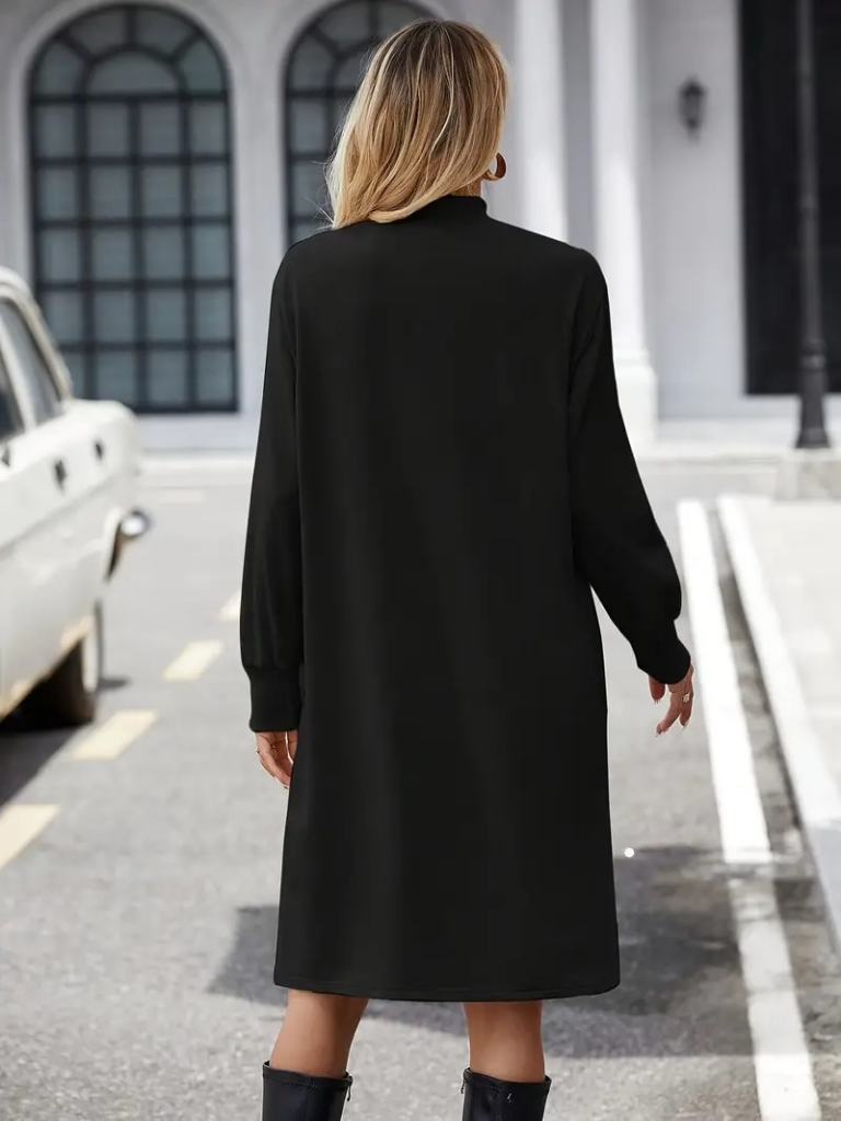 Kadın Uzun Kollu Balıkçı Yaka Kısa şardonlu Dalgıç Elbise