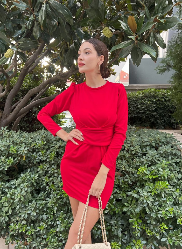 Kadın Uzun Kollu Bisiklet Yaka Bel Kemer Detay Ithal Krep Elbise