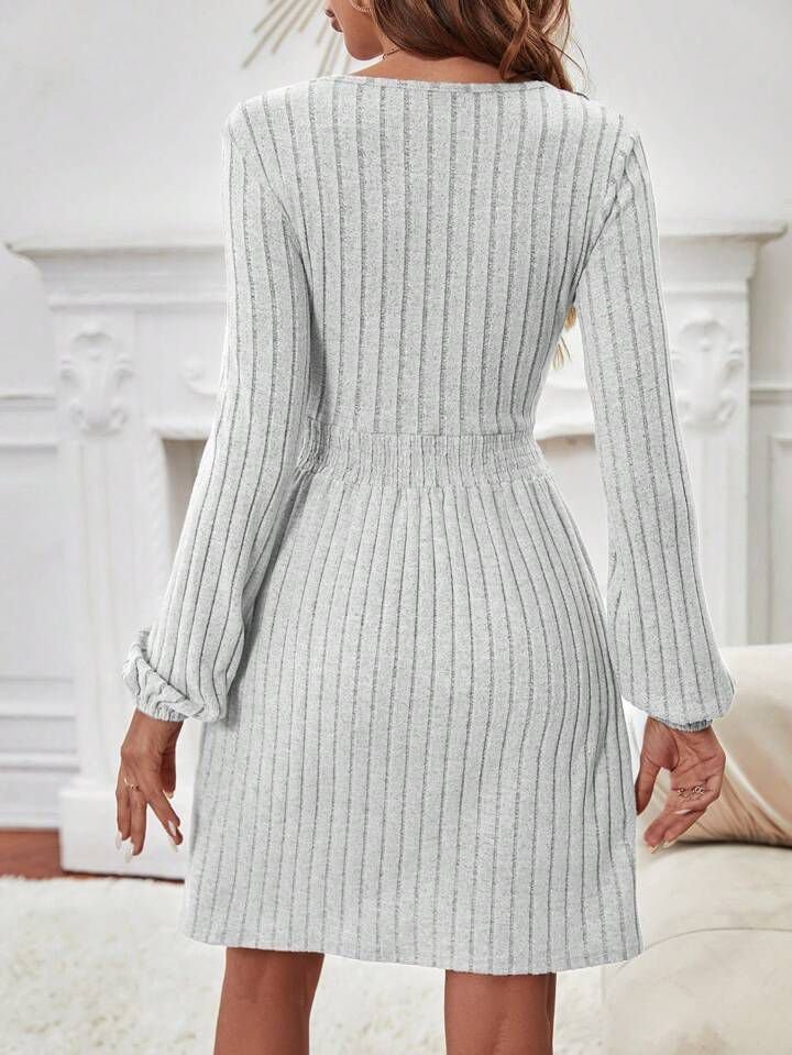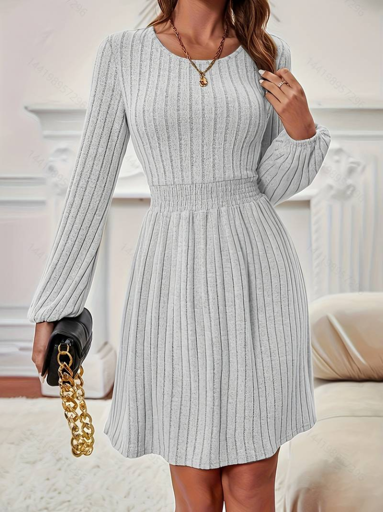 Kadın Uzun Kollu Bisiklet Yaka Beli Lastikli şardonlu Kaşkorse Mini Elbise