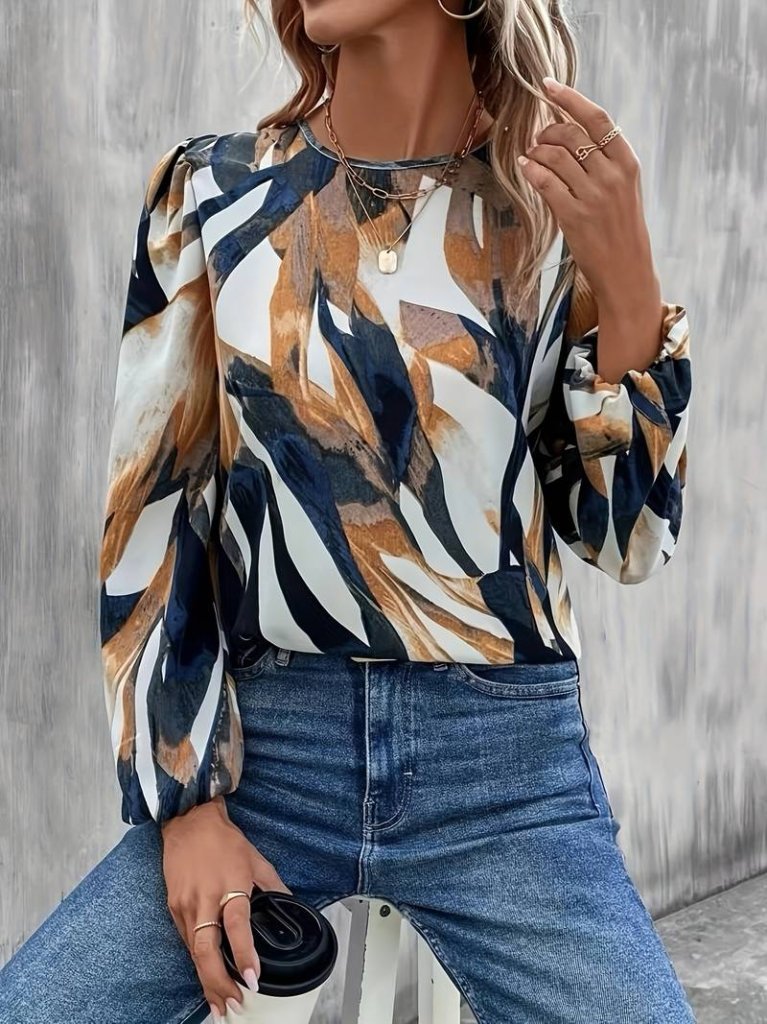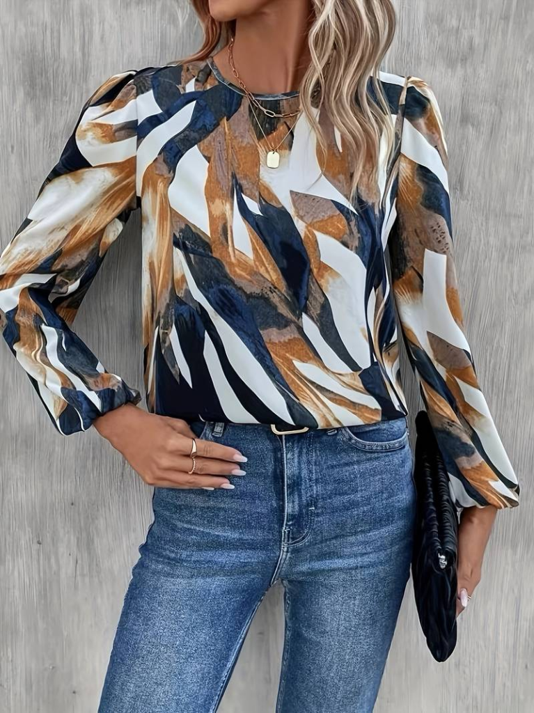 Kadın Uzun Kollu Bisiklet Yaka çok Renkli Sandy Bluz