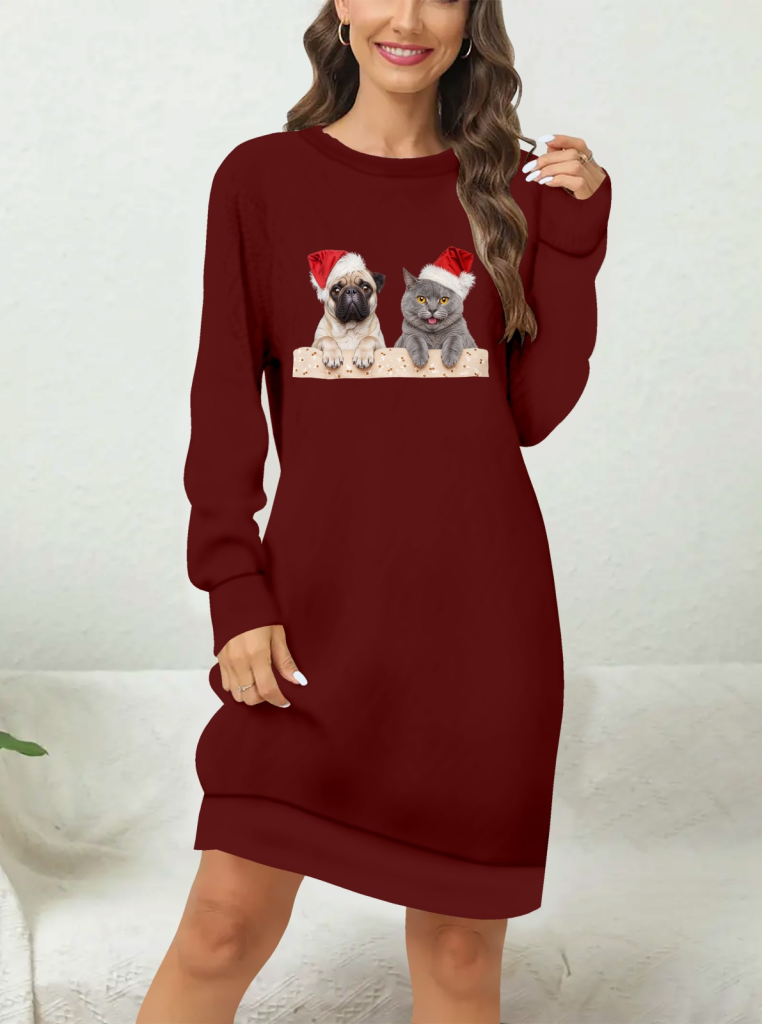 Kadın Uzun Kollu Bisiklet Yaka Desenli Viskon Iki Iplik Elbise