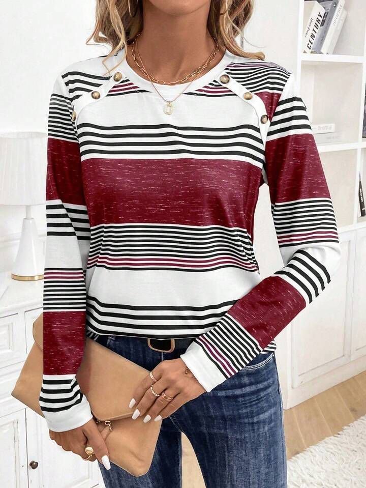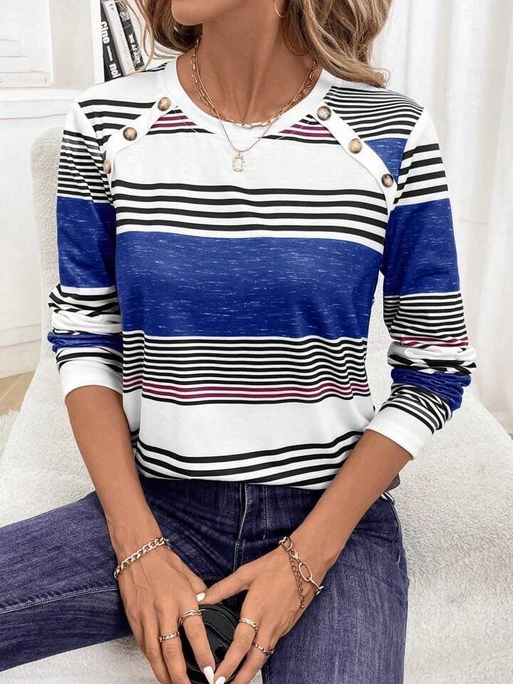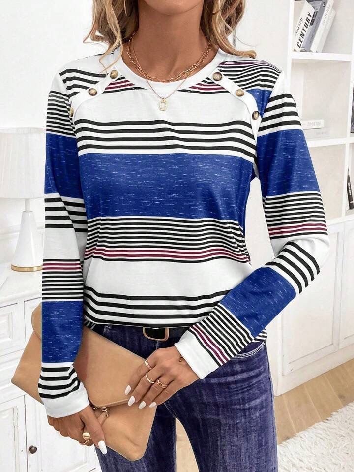 Kadın Uzun Kollu Bisiklet Yaka Düğme Detaylı Desenli Süprem Bluz