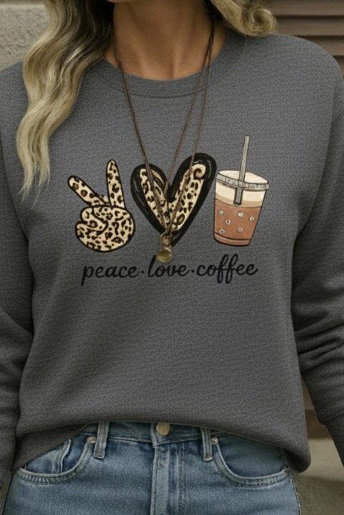 Kadın Uzun Kollu Bisiklet Yaka Kalp Desenli Viskon Iki Iplik Bluz