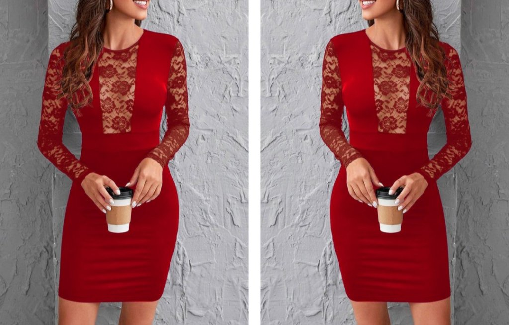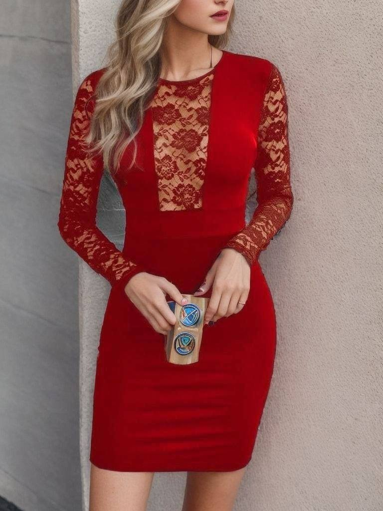 Kadın Uzun Kollu Bisiklet Yaka Kol Ve Göğüs Tül Detay Krep Elbise