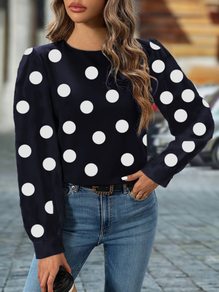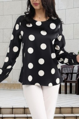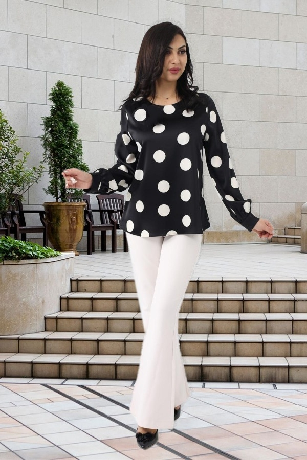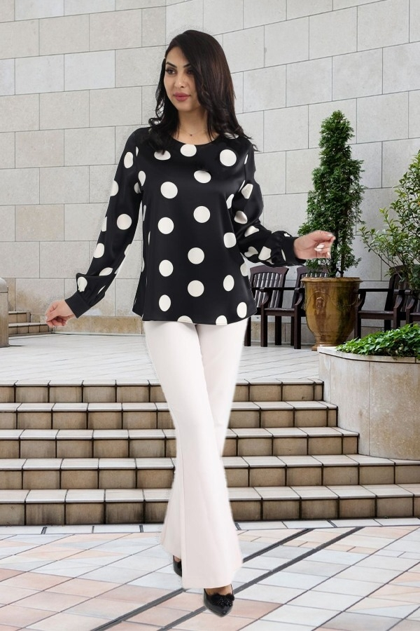 Kadın Uzun Kollu Bisiklet Yaka Kollar Geniş Kol Ağzı Manşetli Iki Düğmeli Detay Krep Bluz