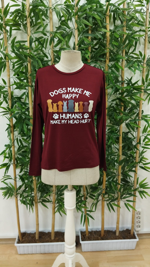 “Kadın Uzun Kollu Bisiklet Yaka Köpek Resimli Viskon Bluz” için yorum yapan ilk kişi siz olun