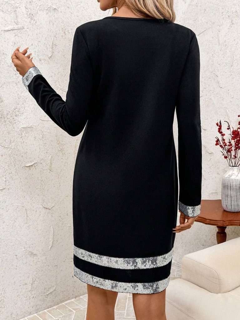 Kadın Uzun Kollu Bisiklet Yaka Mini Ithal Krep Elbise