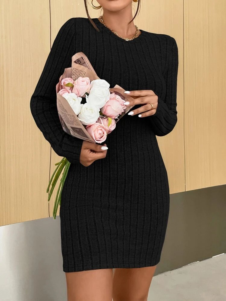 Kadın Uzun Kollu Bisiklet Yaka şardonlu Kalın Fitilli Kaşkorse Mini Boy Elbise