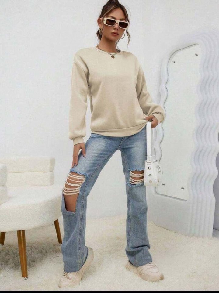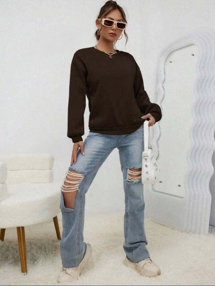 Kadın Uzun Kollu Bisiklet Yaka şardonlu üç Iplik Kumaş Sweat