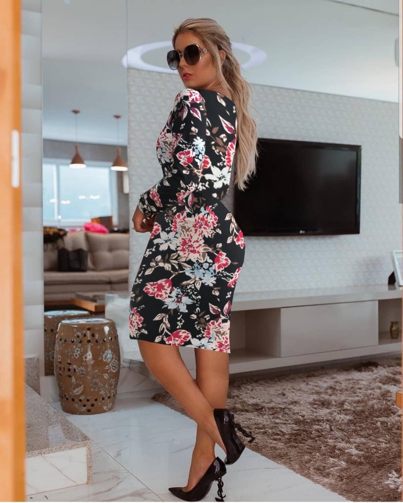 Kadın Uzun Kollu Bisiklet Yaka Scuba Midi Boy Elbise