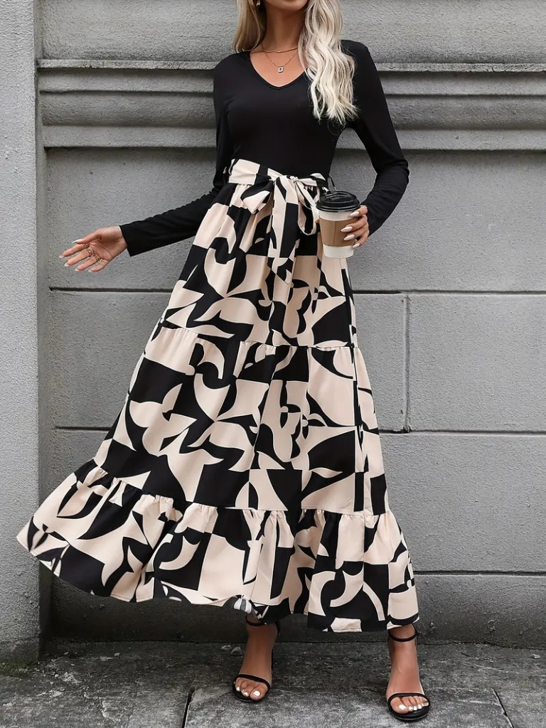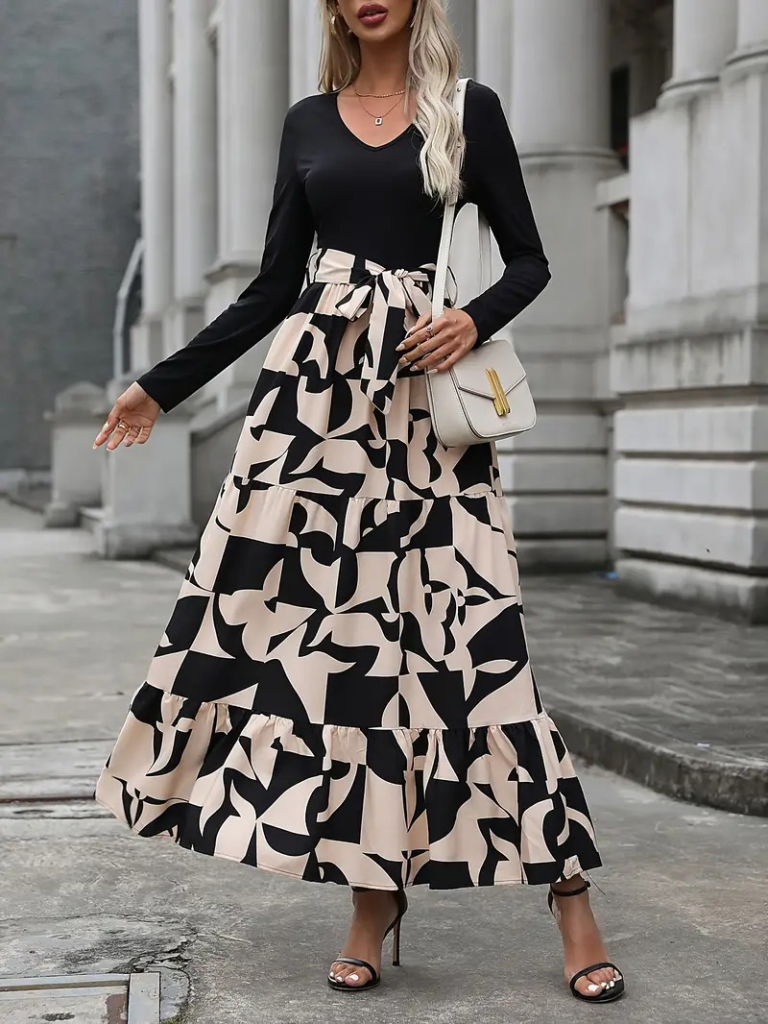 Kadın Uzun Kollu Bisiklet Yaka Uzun Elbise