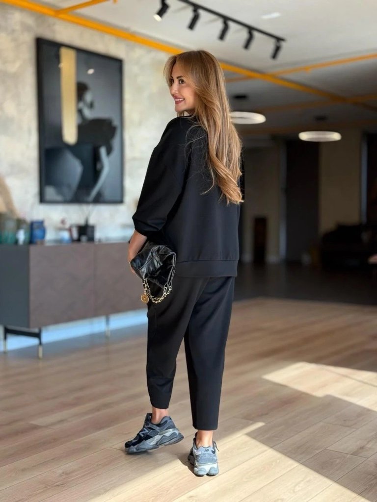 Kadın Uzun Kollu Bisiklet Yaka Viskon Iki Iplik Bluz Ve Pantolon Ikili Takım