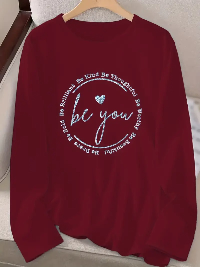 Kadın Uzun Kollu Bisiklet Yakabe Youdesenli Viskon Bluz