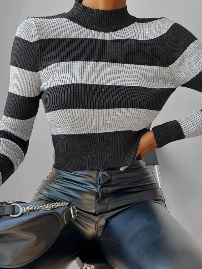 Kadın Uzun Kollu çizgi Detay Triko Bluz