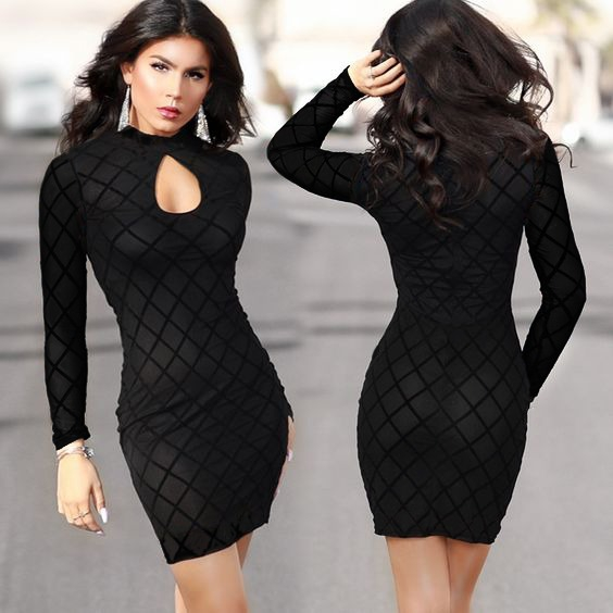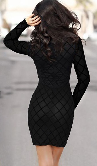 Kadın Uzun Kollu Damla Detay Flok Baskı Dalgıç Mini Elbise