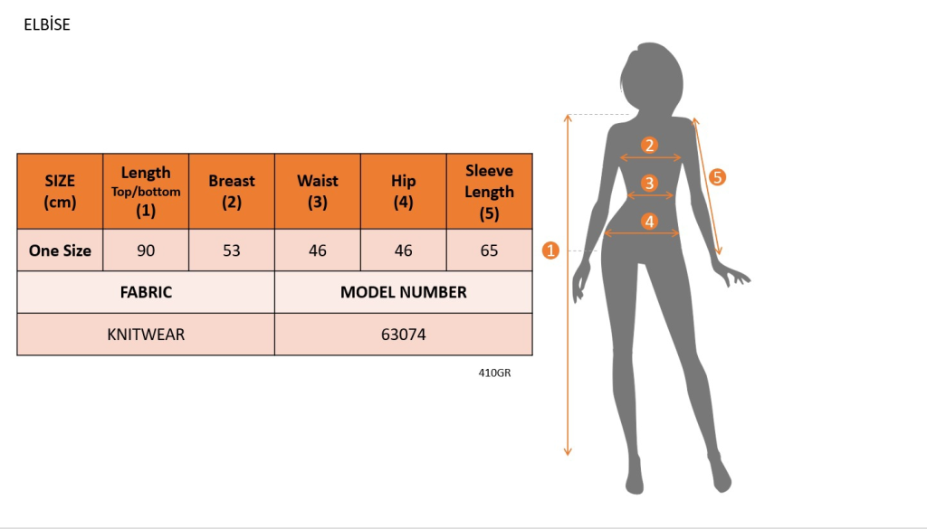 Modelin Ölçüleri: Boy:165, Kg:55, Göğüs:90, Bel:72, Kalça: 100