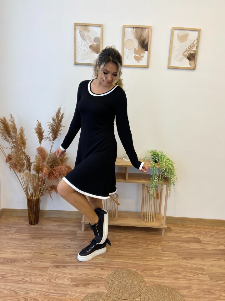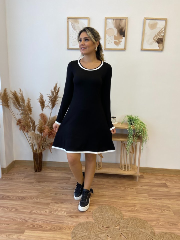Kadın Uzun Kollu Derin Yuvarlak Yakalı Kısa Viskon Iki Iplik Elbise