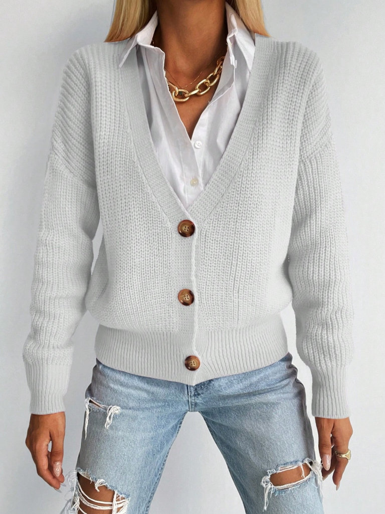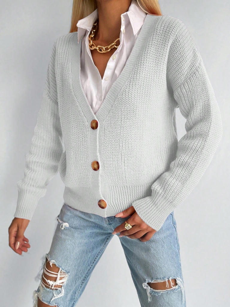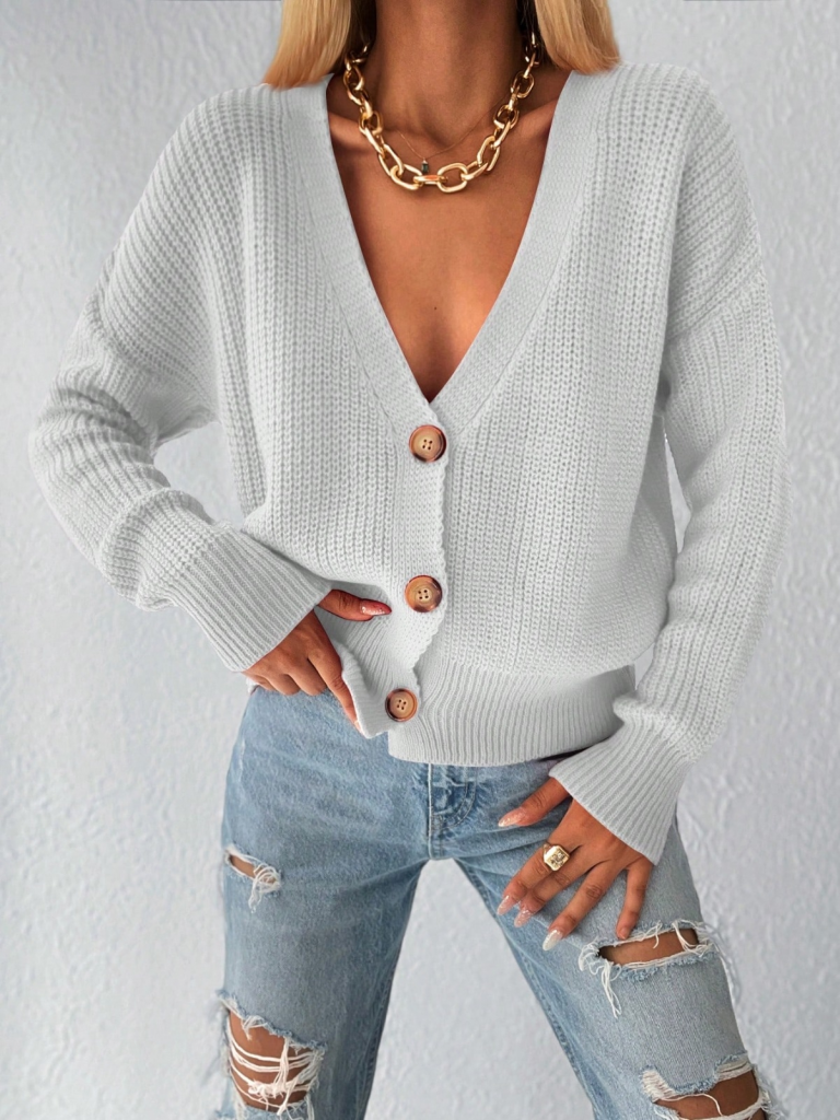 Kadın Uzun Kollu Düğme Detay Triko Hırka