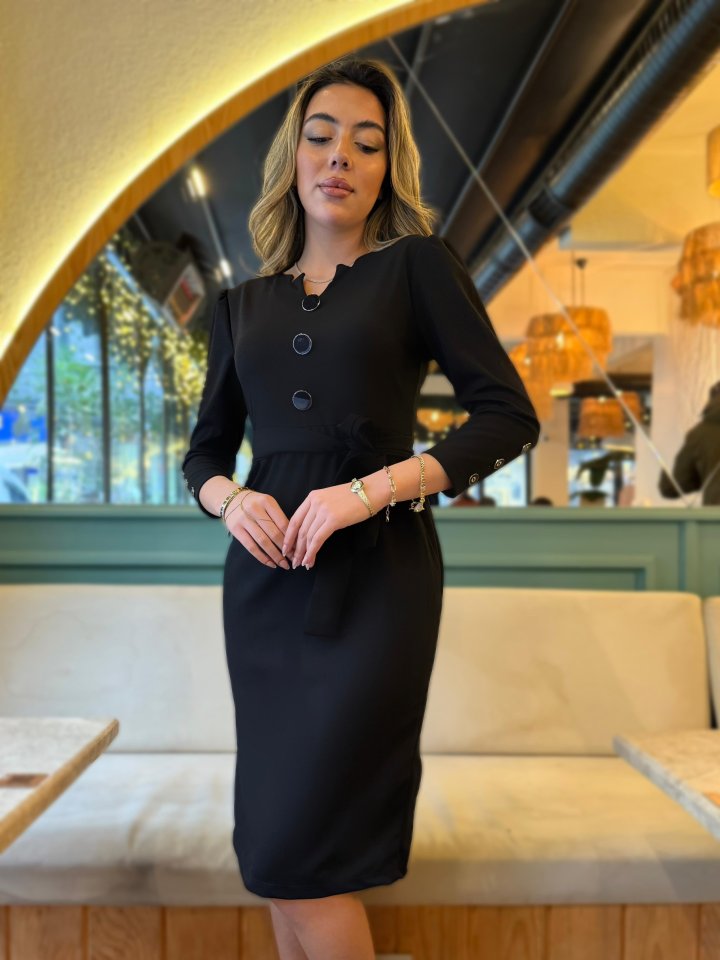 “Kadın Uzun Kollu Düğme Detaylı Kendinden Kemerli Ithal Krep Elbise” için yorum yapan ilk kişi siz olun