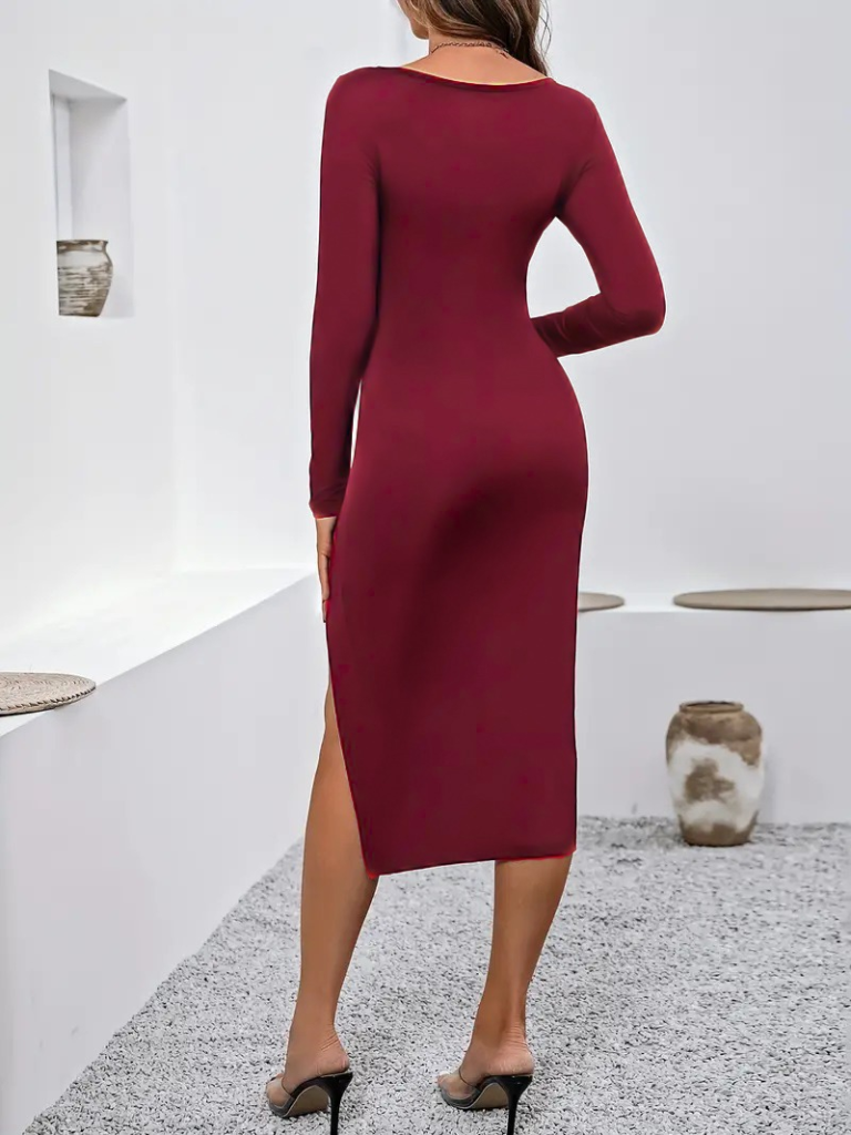 Kadın Uzun Kollu Göğüs Ve Göbek Dekolte Detay Sandy Midi Boy Elbise