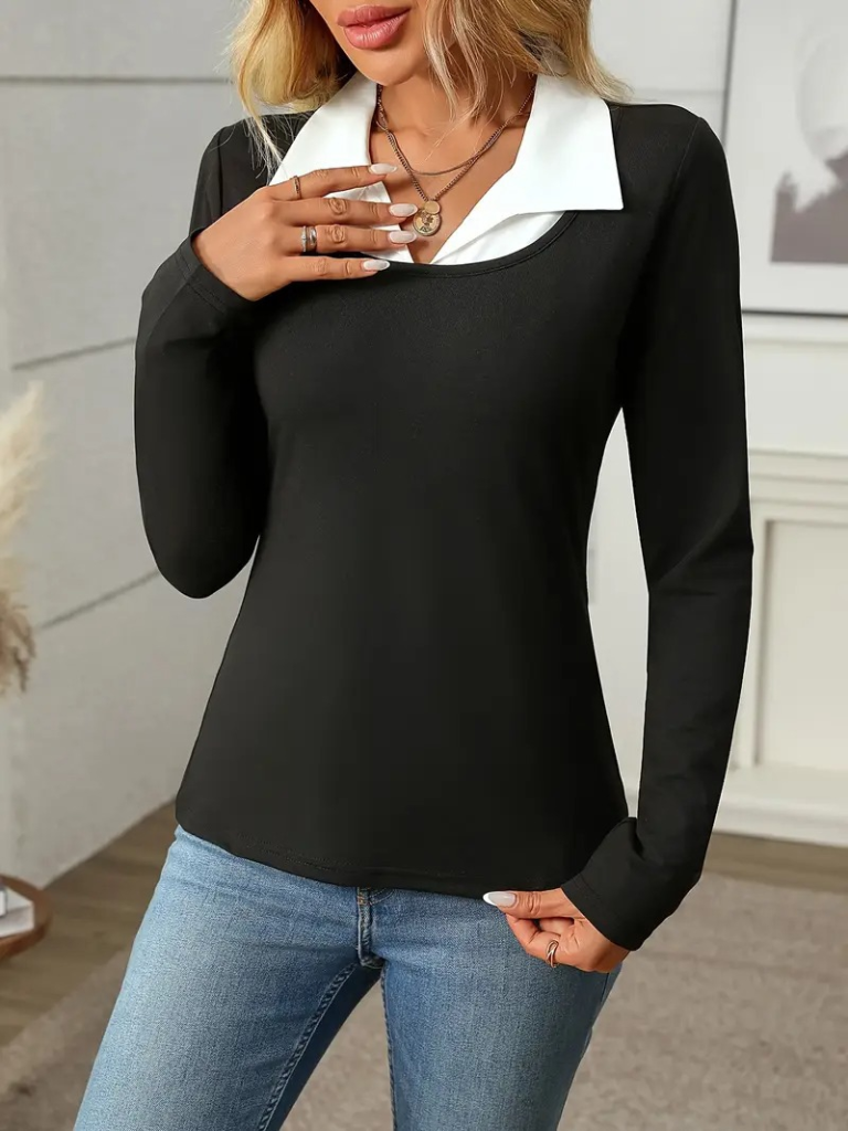 Kadın Uzun Kollu Gömlek Yaka Viskon Bluz