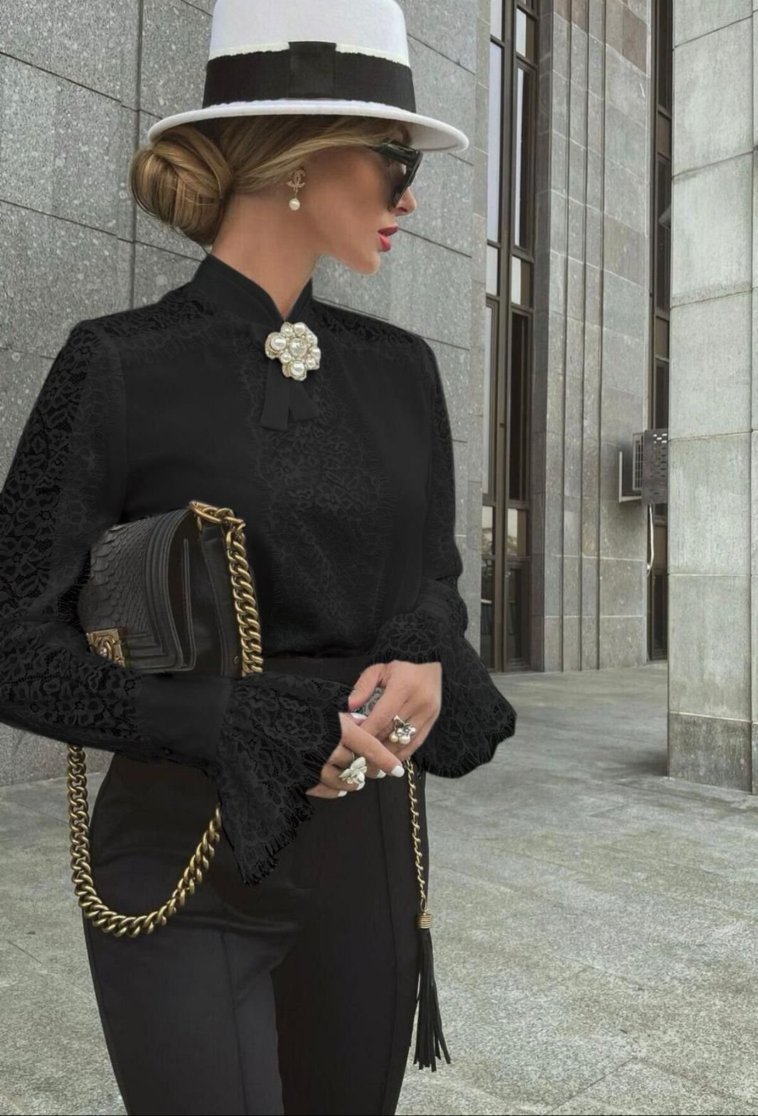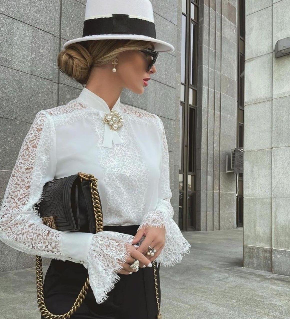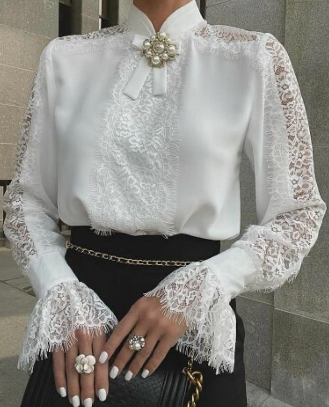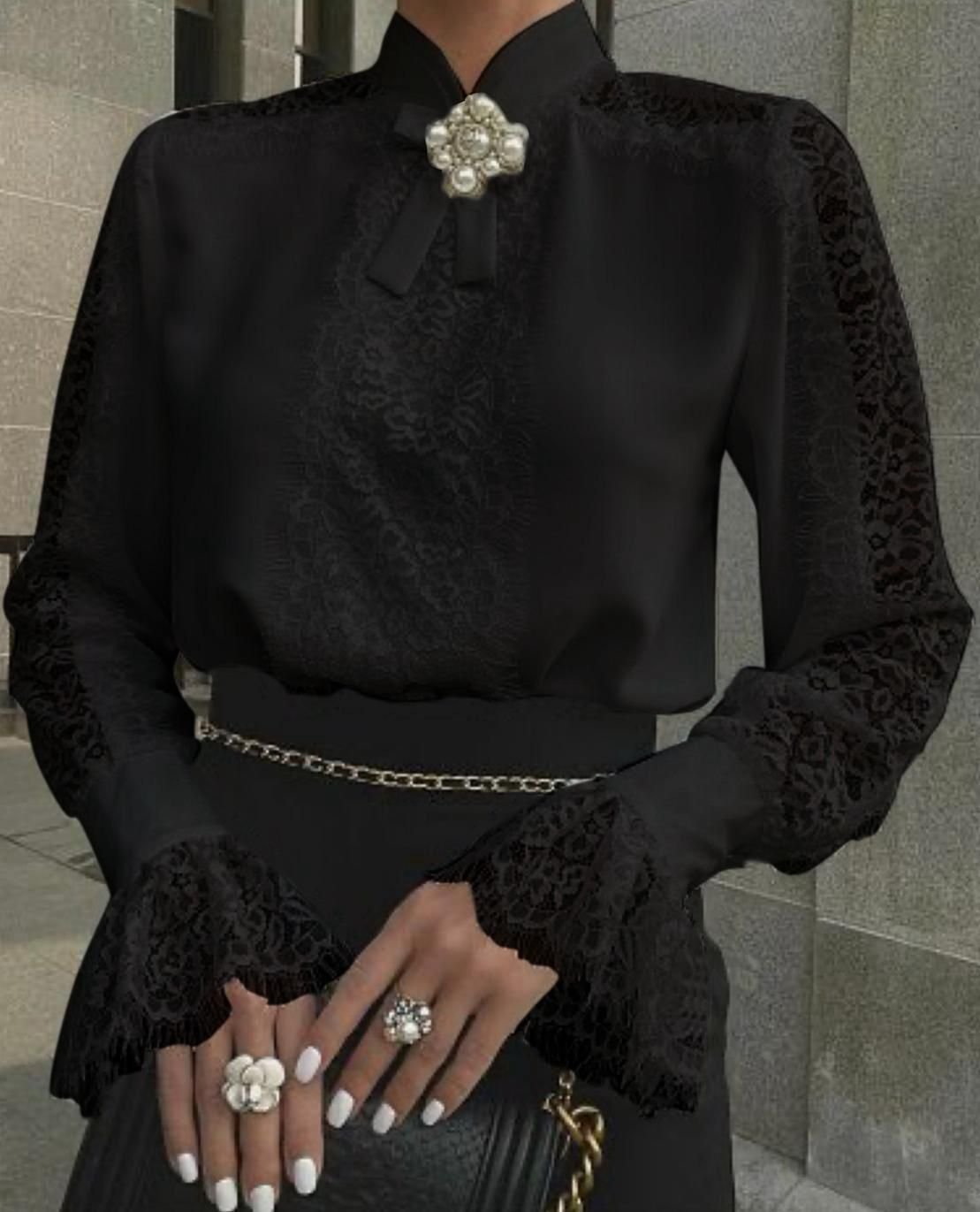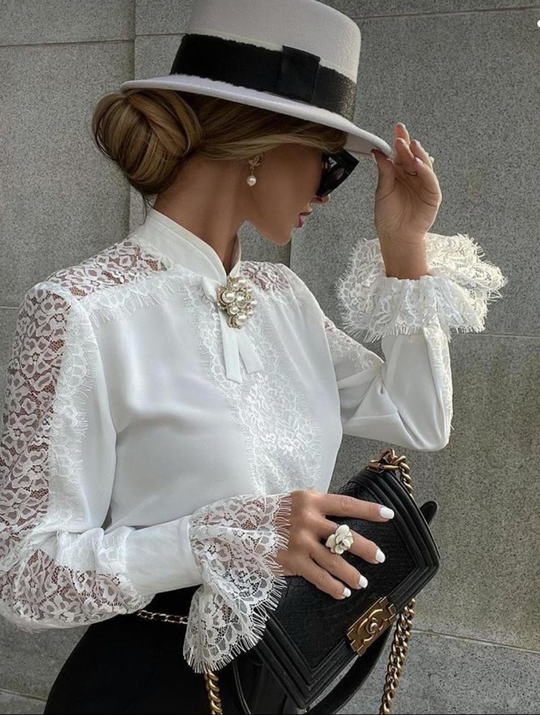 Kadın Uzun Kollu Hakim Yaka Ithal Dantel Detay Gömlek