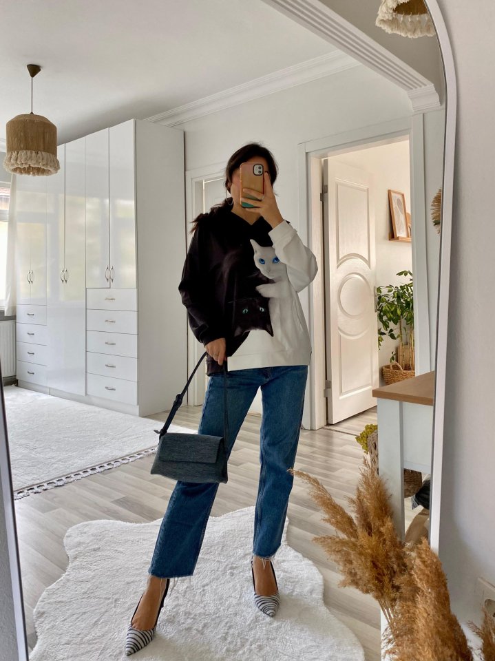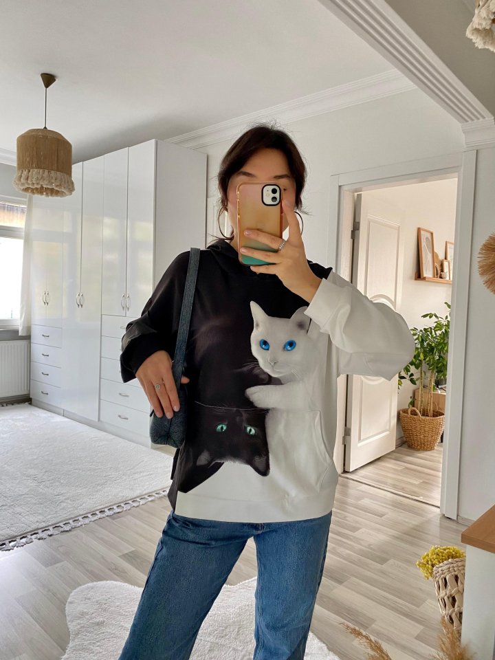 “Kadın Uzun Kollu Kapşonlu Bağcıklı Kedi Desenli şardonlu Dalgıç Bluz” için yorum yapan ilk kişi siz olun