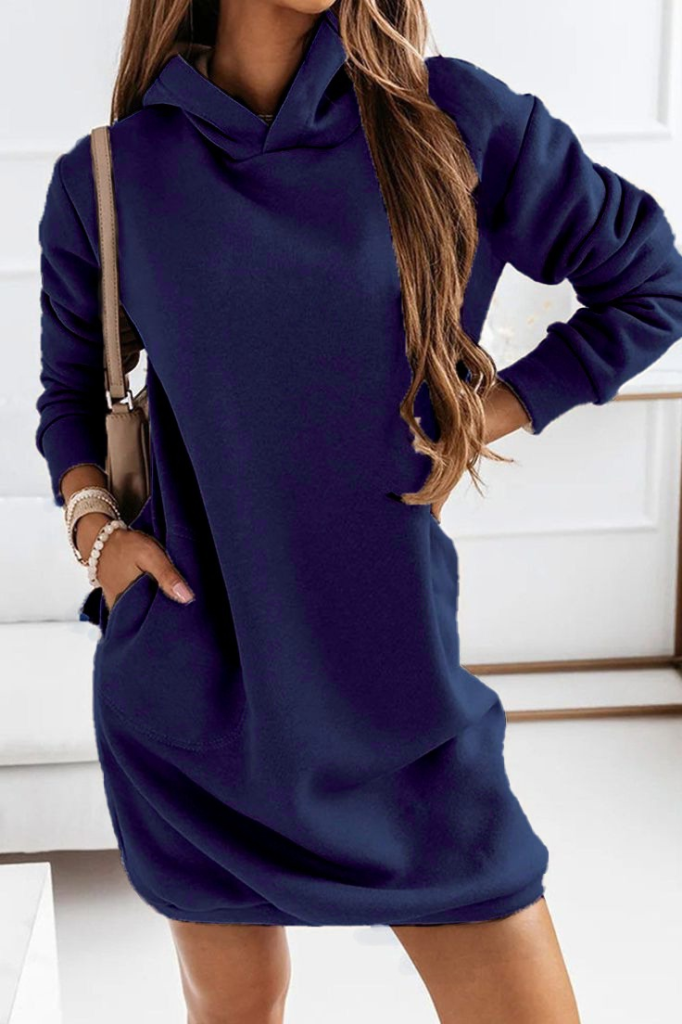 Kadın Uzun Kollu Kapşonlu Kısa Iki Iplik Elbise