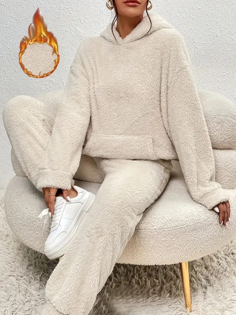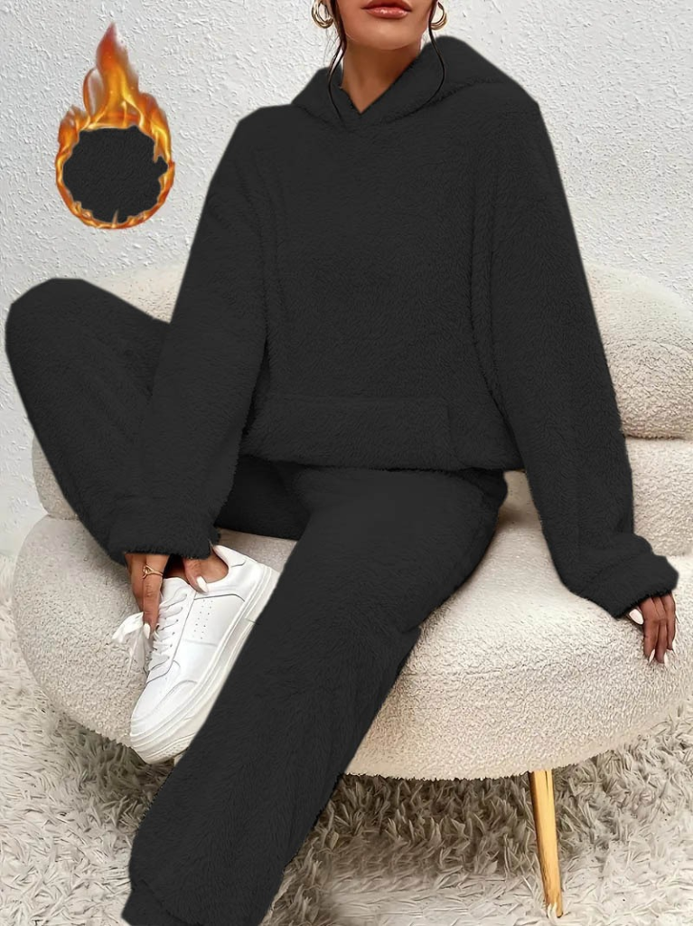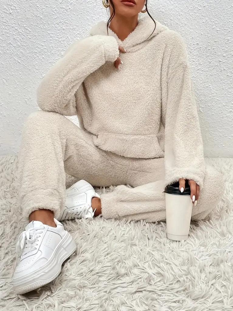 Kadın Uzun Kollu Kapşonlu önden Cepli Peluş Alt Ve üst Ikili Takım