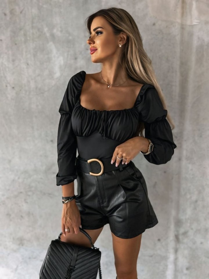 Kadın Uzun Kollu Kare Yaka Göğüs Büzgü Detay Sandy Bluz