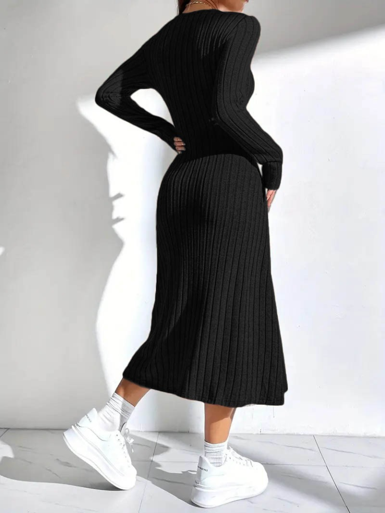 Kadın Uzun Kollu Kare Yakalı Midi şardonlu Kaşkorse Elbise