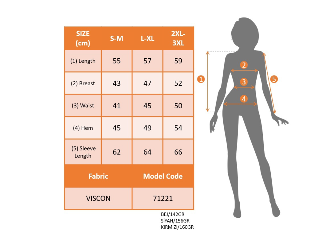 Modelin Ölçüleri: Boy:165, Kg:55, Göğüs:90, Bel:72, Kalça: 100