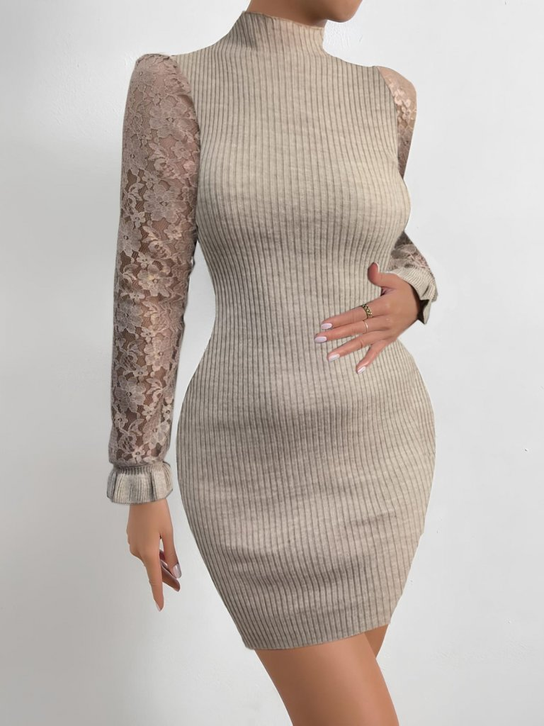 Kadın Uzun Kollu Kollar Tül Detay Triko Mini Boy Elbise