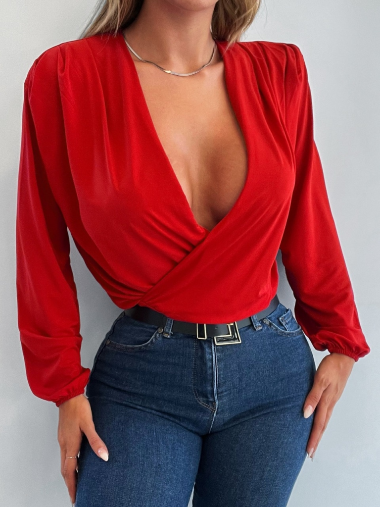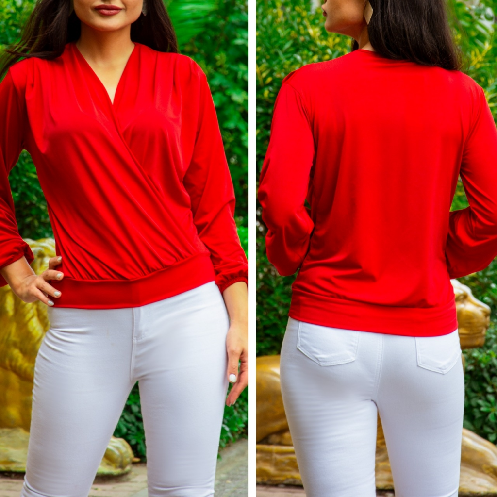 Kadın Uzun Kollu Kruvaze Yaka Sandy Bluz