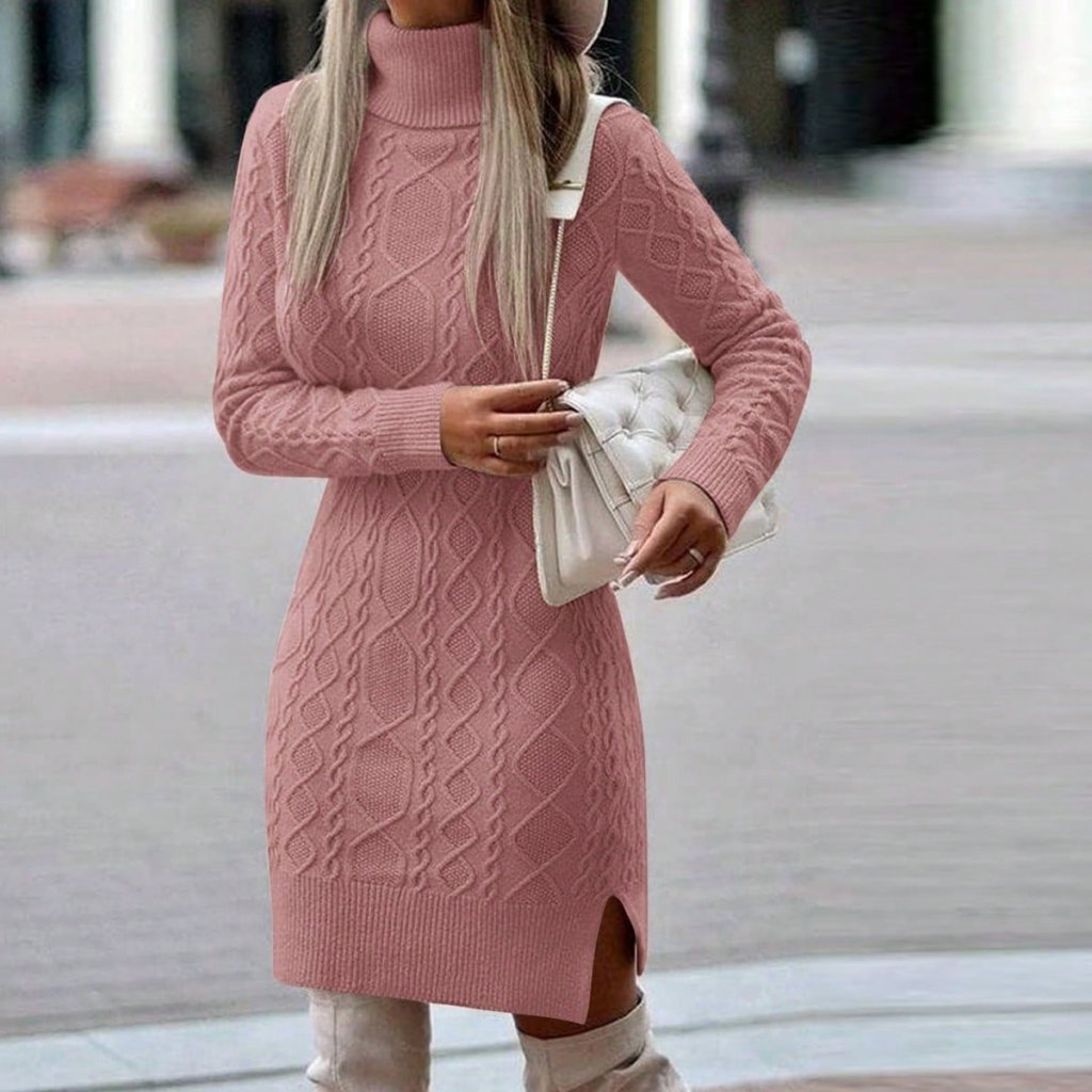 Kadın Uzun Kollu Loren Yünlü Motifli Midi Boy Triko Elbise