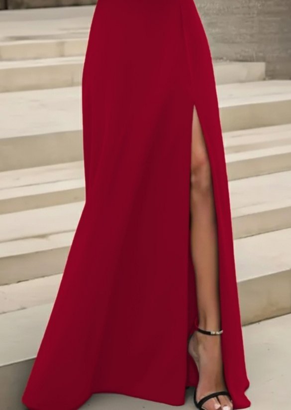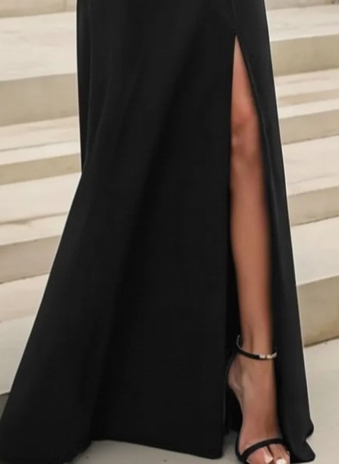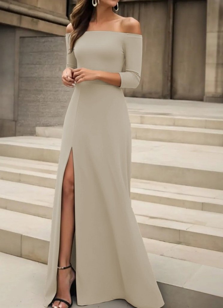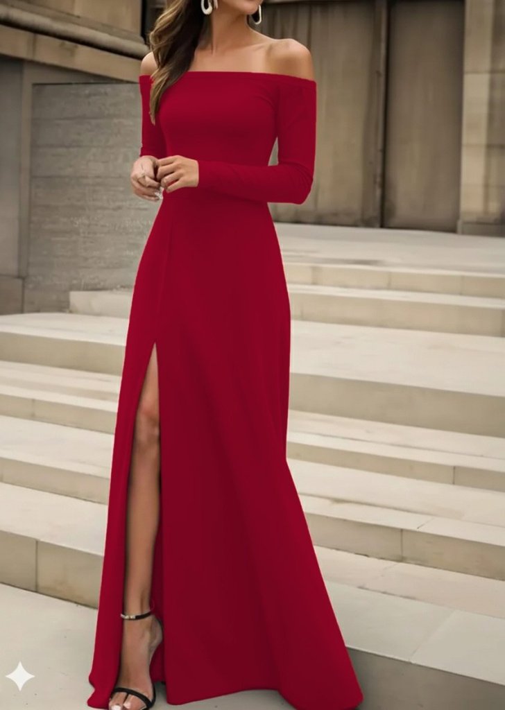 Kadın Uzun Kollu Madonna Yakalı Yırtmaç Detaylı Uzun Ithal Krep Elbise