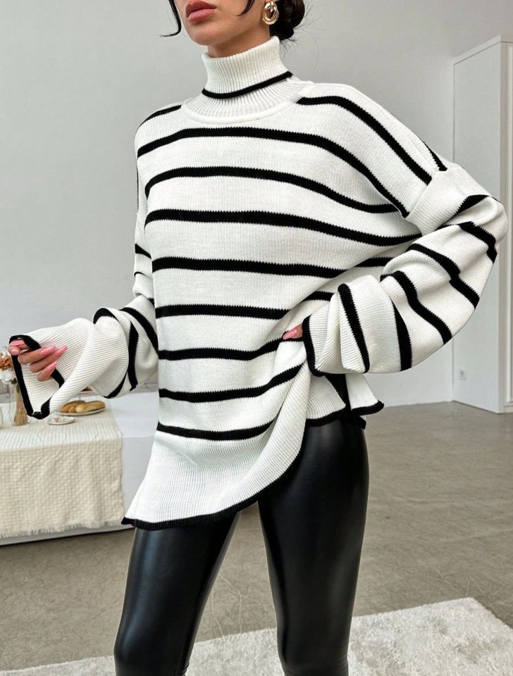 Kadın Uzun Kollu şerit Detay Triko Tunik