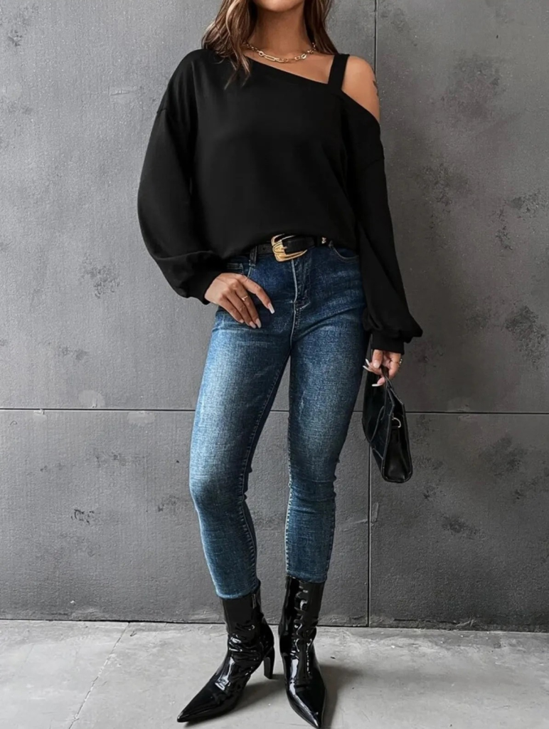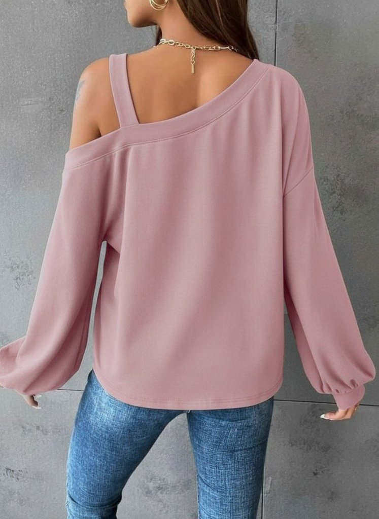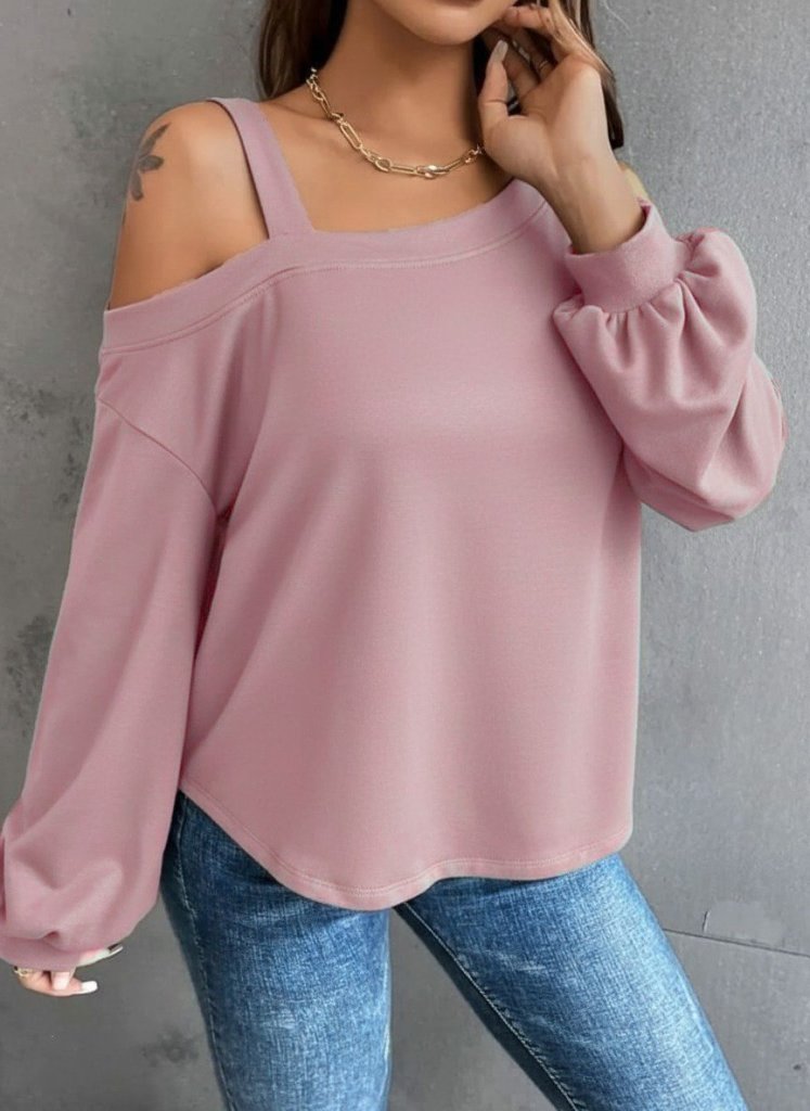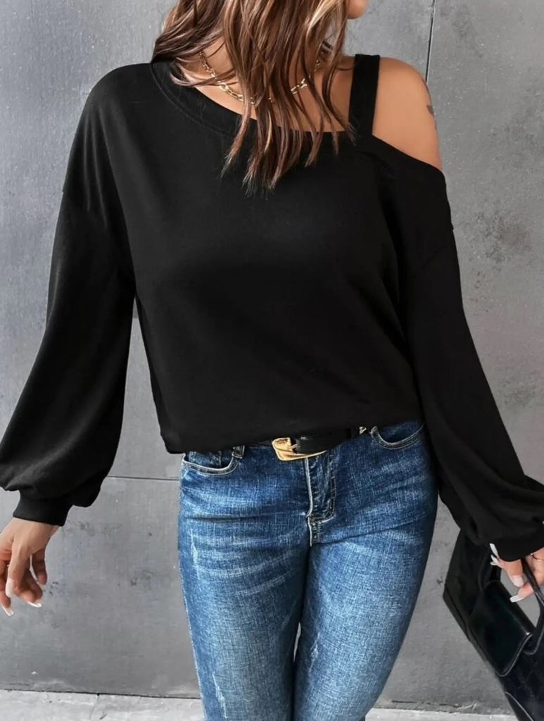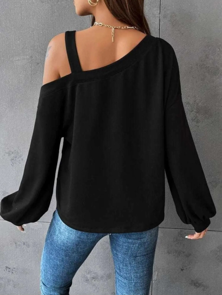Kadın Uzun Kollu Tek Omuz Askı Detay Salaş Viskon Iki Iplik Bluz