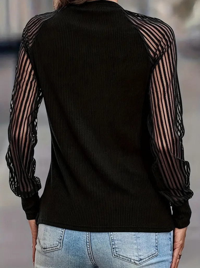 Kadın Uzun Kollu Tül Detaylı Bisiklet Yakalı Kaşkorse Bluz
