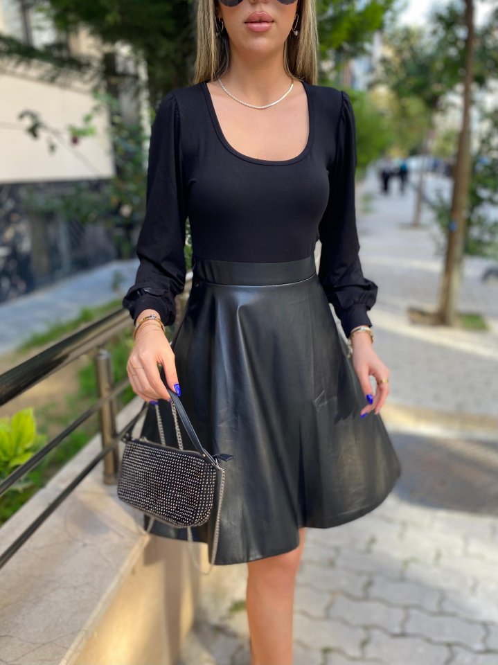 “Kadın Uzun Kollu üst Viskon Alt Kloş Deri Elbise” için yorum yapan ilk kişi siz olun