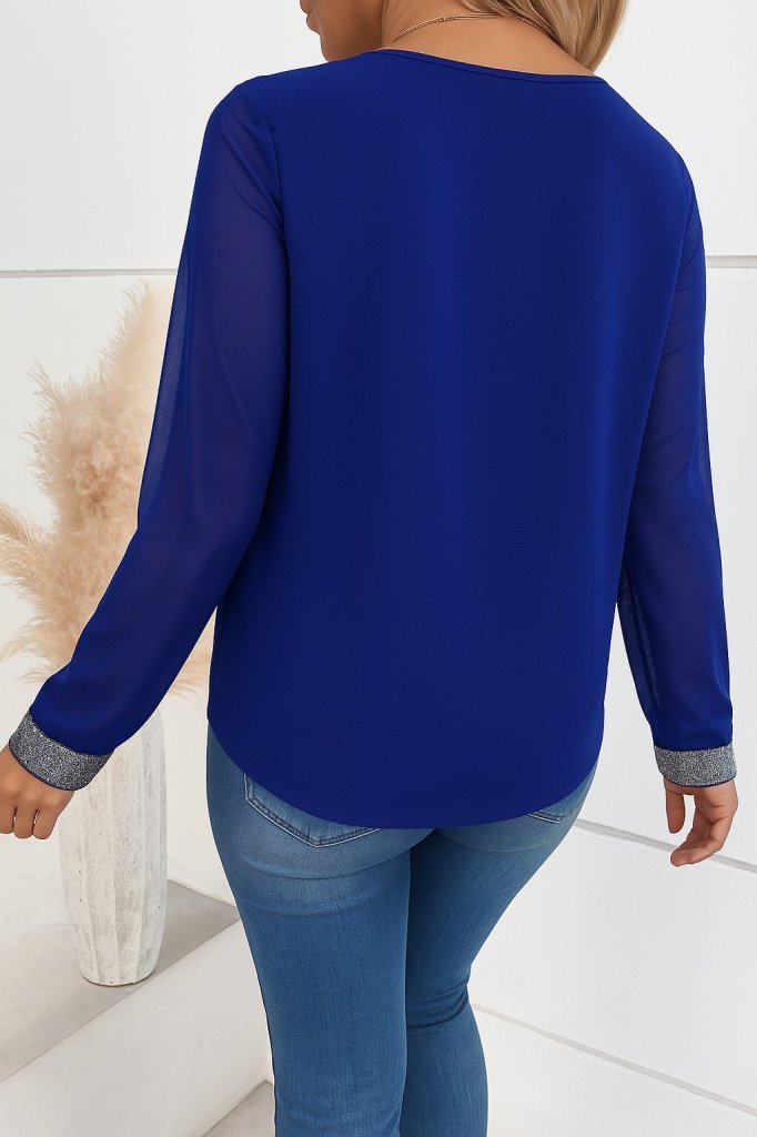Kadın Uzun Kollu V Pulpayet Yakalı Ithal Krep Bluz