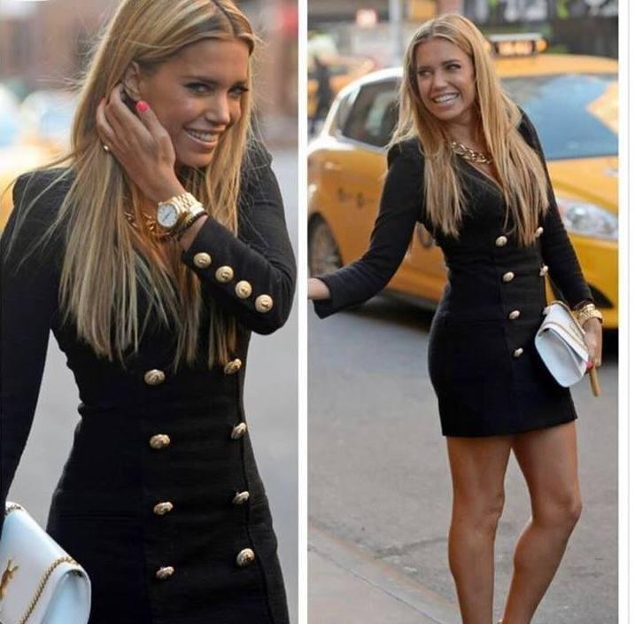 Kadın Uzun Kollu V Yaka Düğme Detay Ceket Elbise