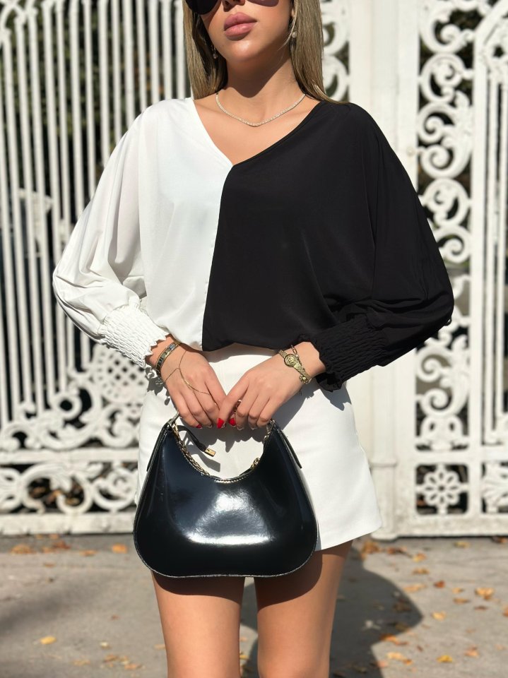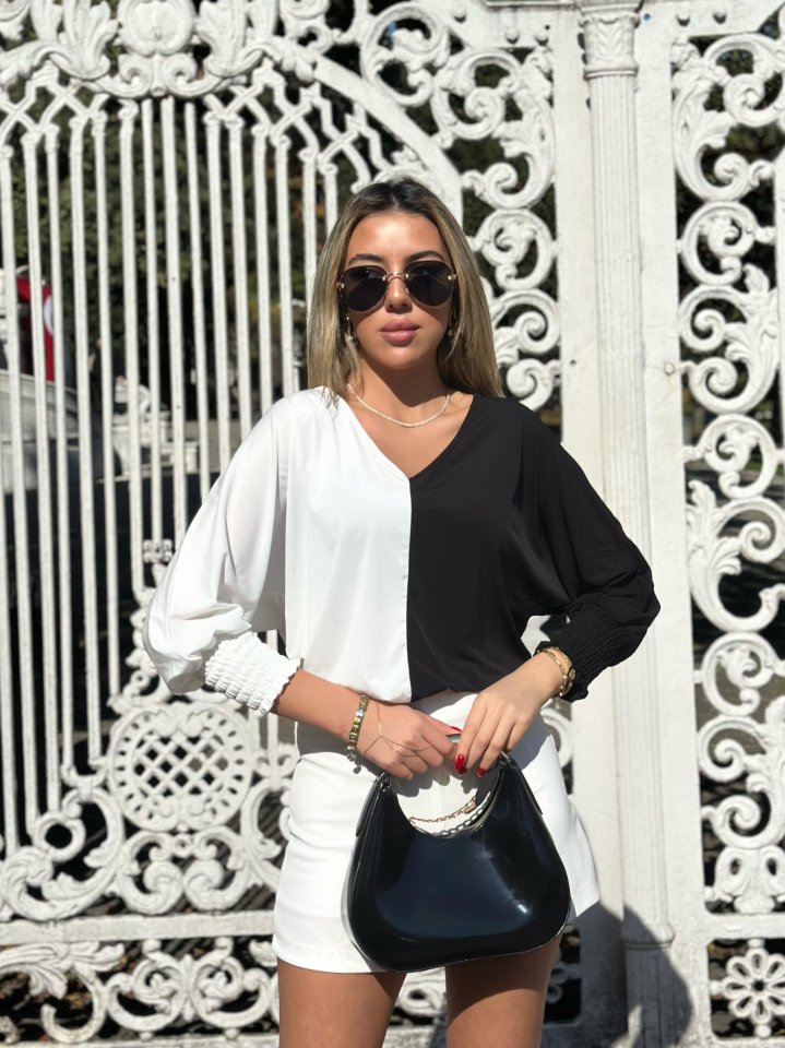 Kadın Uzun Kollu V Yaka Kol Ağzı Gipeli Sandy Bluz