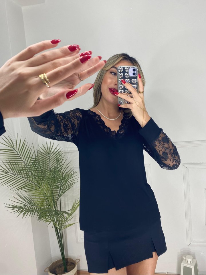 “Kadın Uzun Kollu V Yakalı Dantel Detaylı Viskon Bluz” için yorum yapan ilk kişi siz olun