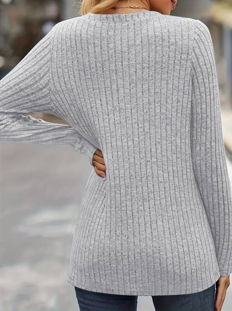 Kadın Uzun Kollu V Yakalı Düğmeli şardonlu Kaşkorse Bluz