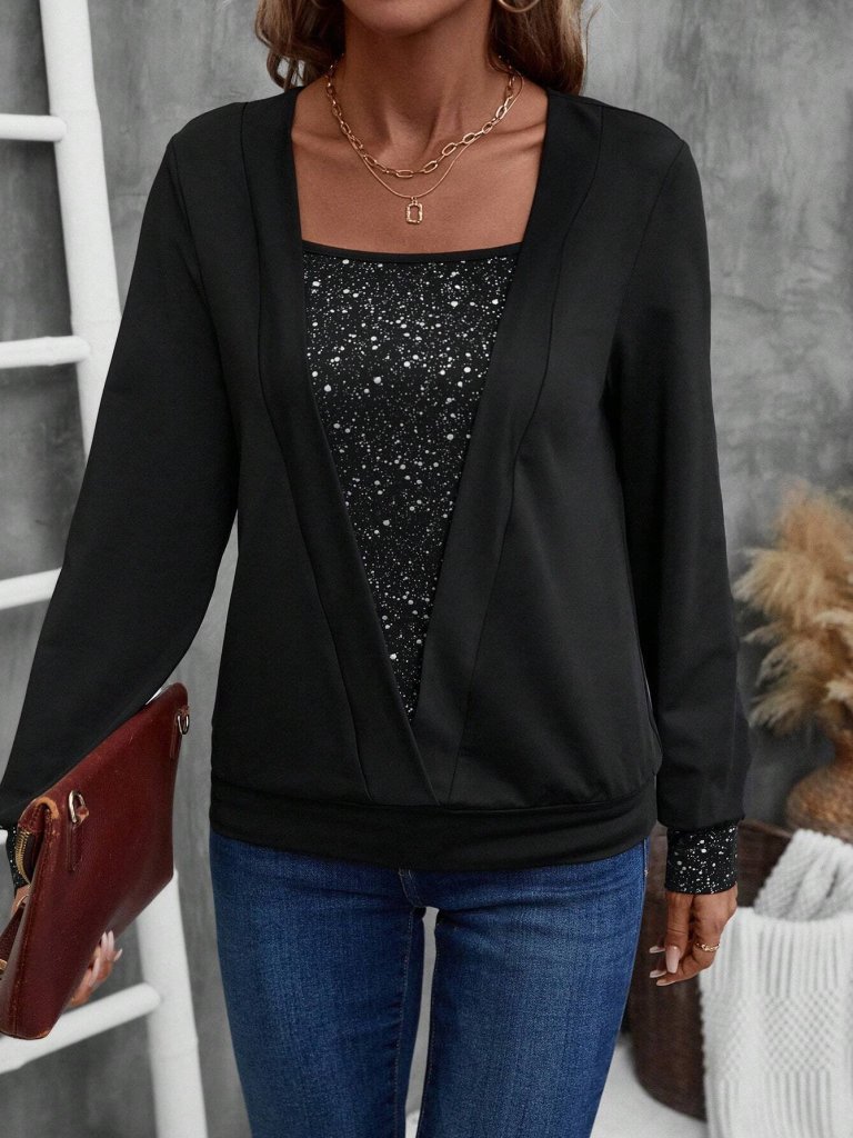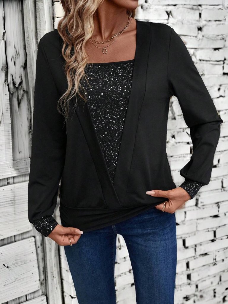 Kadın Uzun Kollu V Yakalı Içi Süprem Desenli Dışı Viskon Bluz