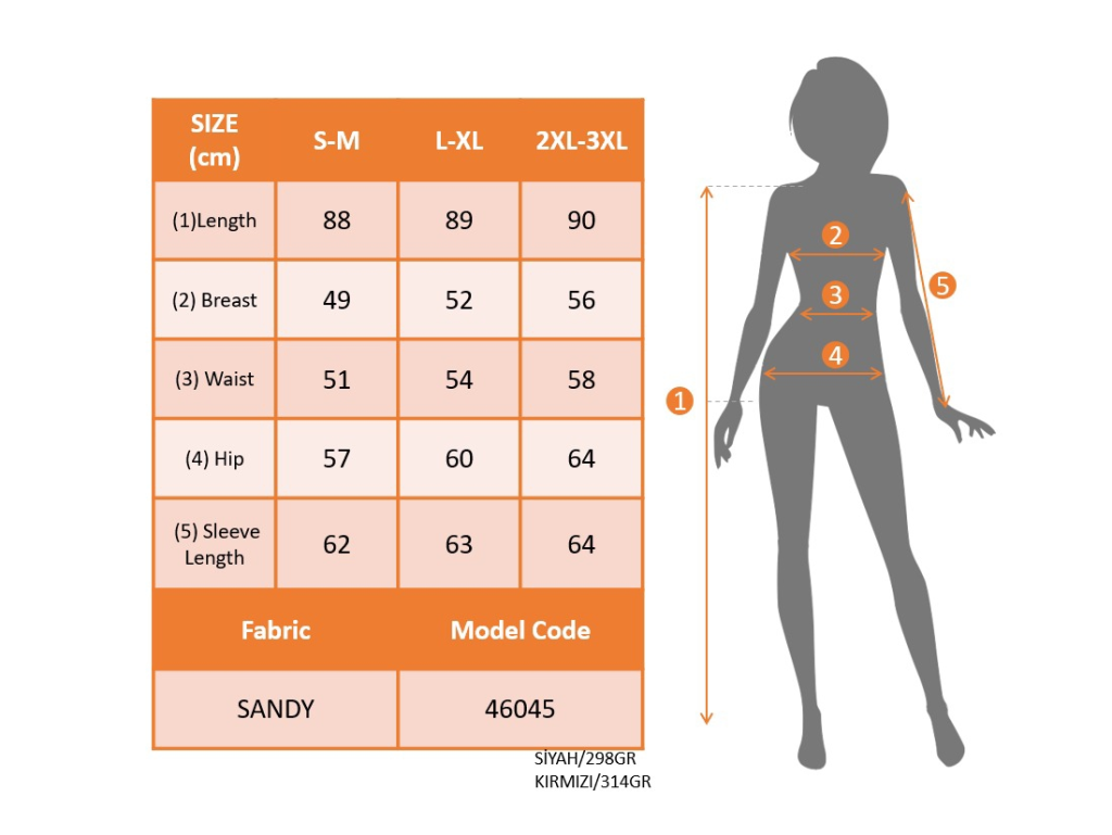 Modelin Ölçüleri: Boy:165, Kg:55, Göğüs:90, Bel:72, Kalça: 100