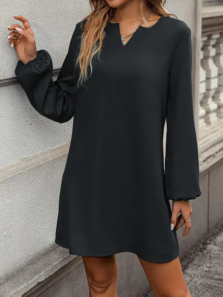 Kadın Uzun Kollu V Yakalı Salaş Ithal Krep Elbise