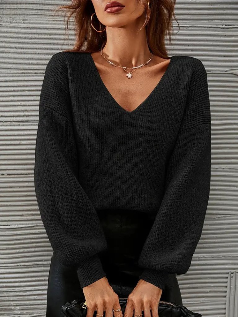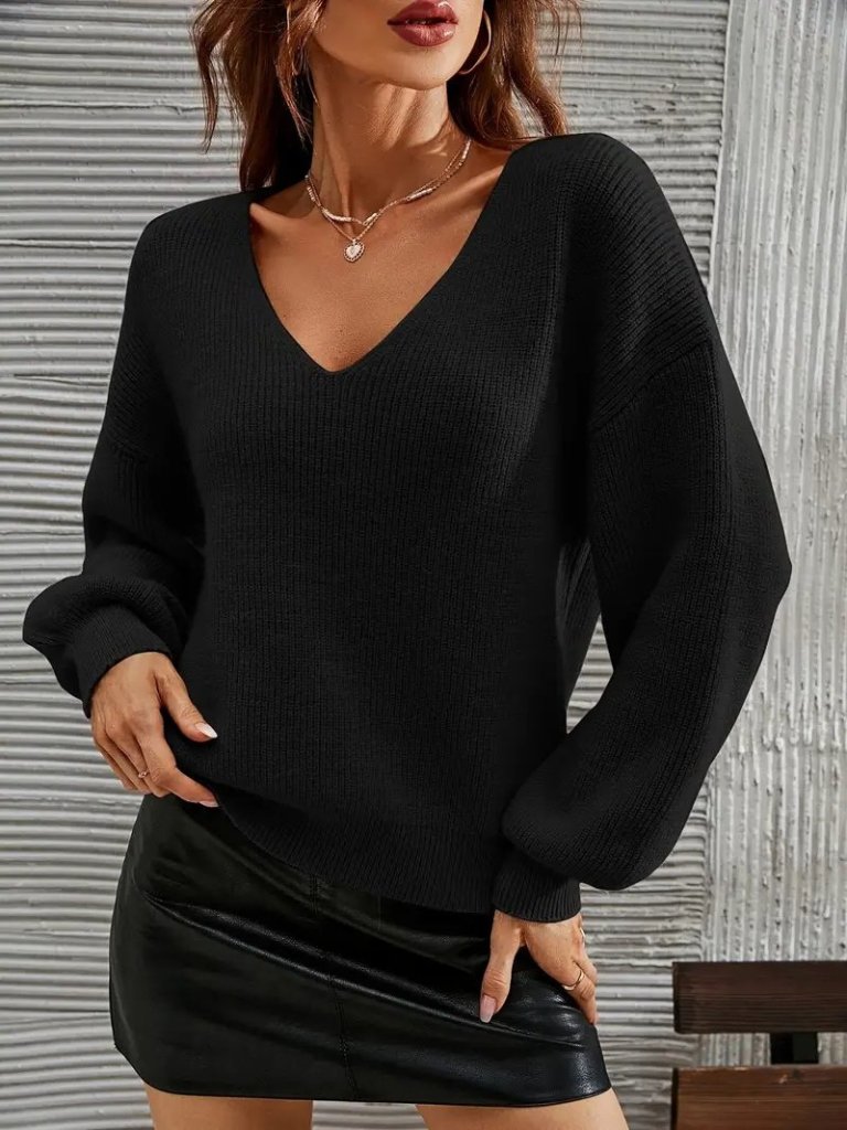 Kadın Uzun Kollu V Yakalı Triko Bluz